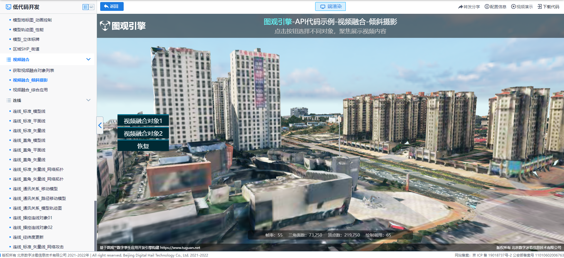 图观 低代码开发:端渲染:技术特性:应用开发:视频融合:视频融合_倾斜摄影