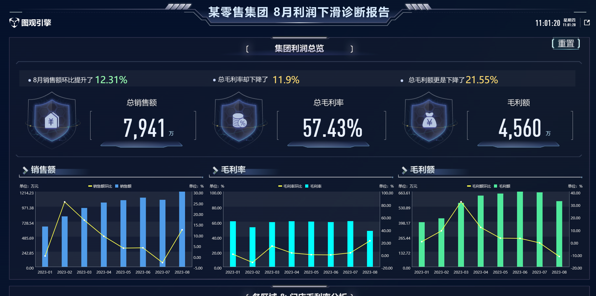 图观 零代码开发:端渲染:行业应用:零售:某零售集团8月利润下滑诊断报告