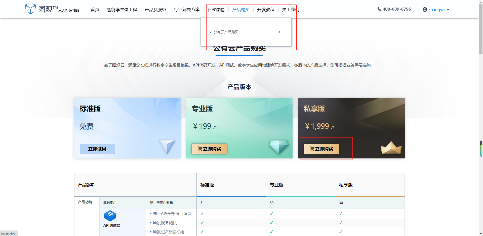 3、点击产品购买—公有云产品购买,点击私享版立即购买