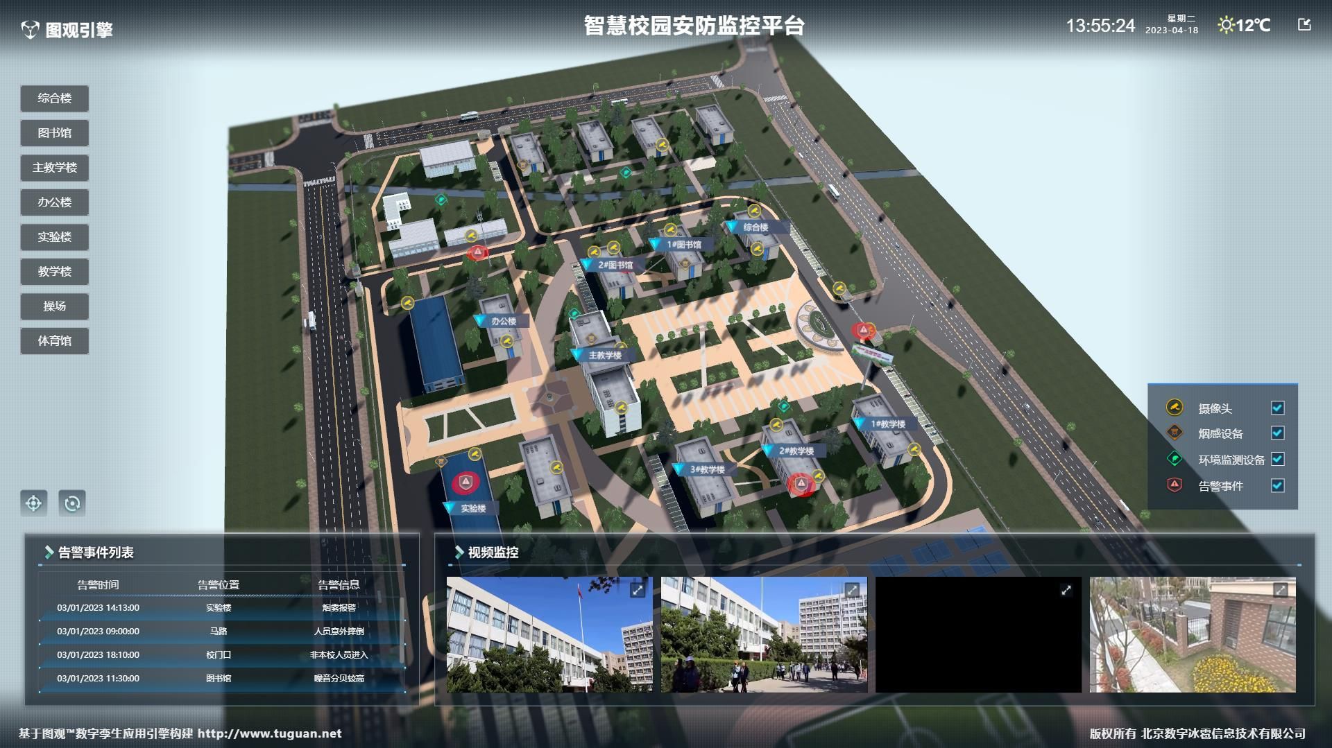 图观 零代码开发:端渲染:行业应用:园区:智慧校园安防监控平台
