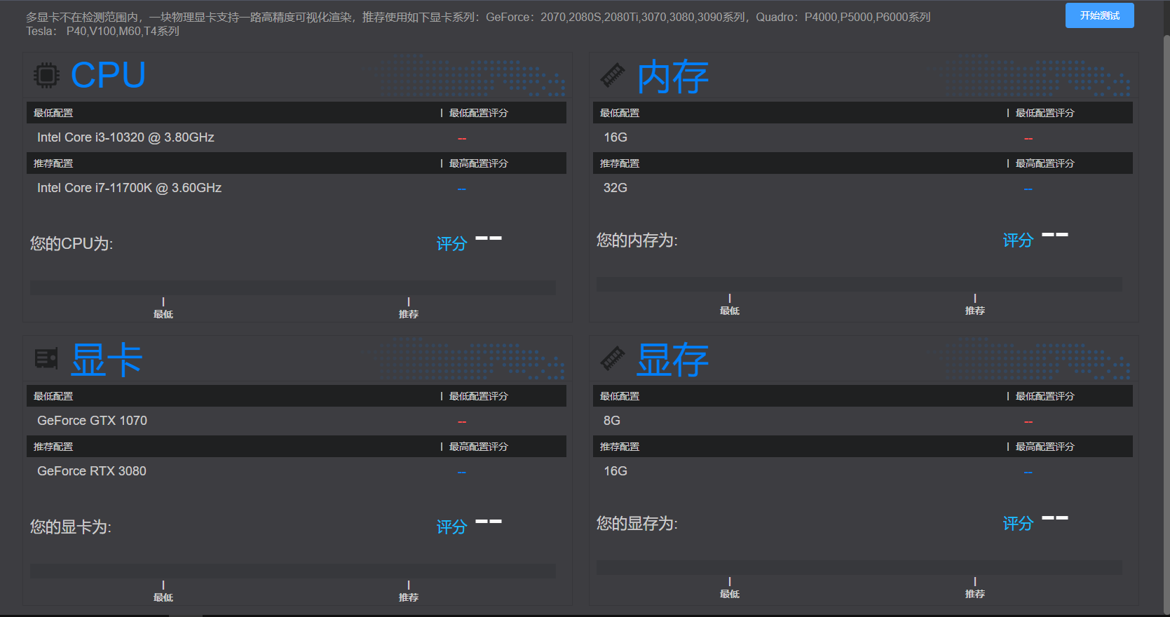 对服务器的硬件信息进行统计,评分,以此来判断服务器渲染场景的能力。