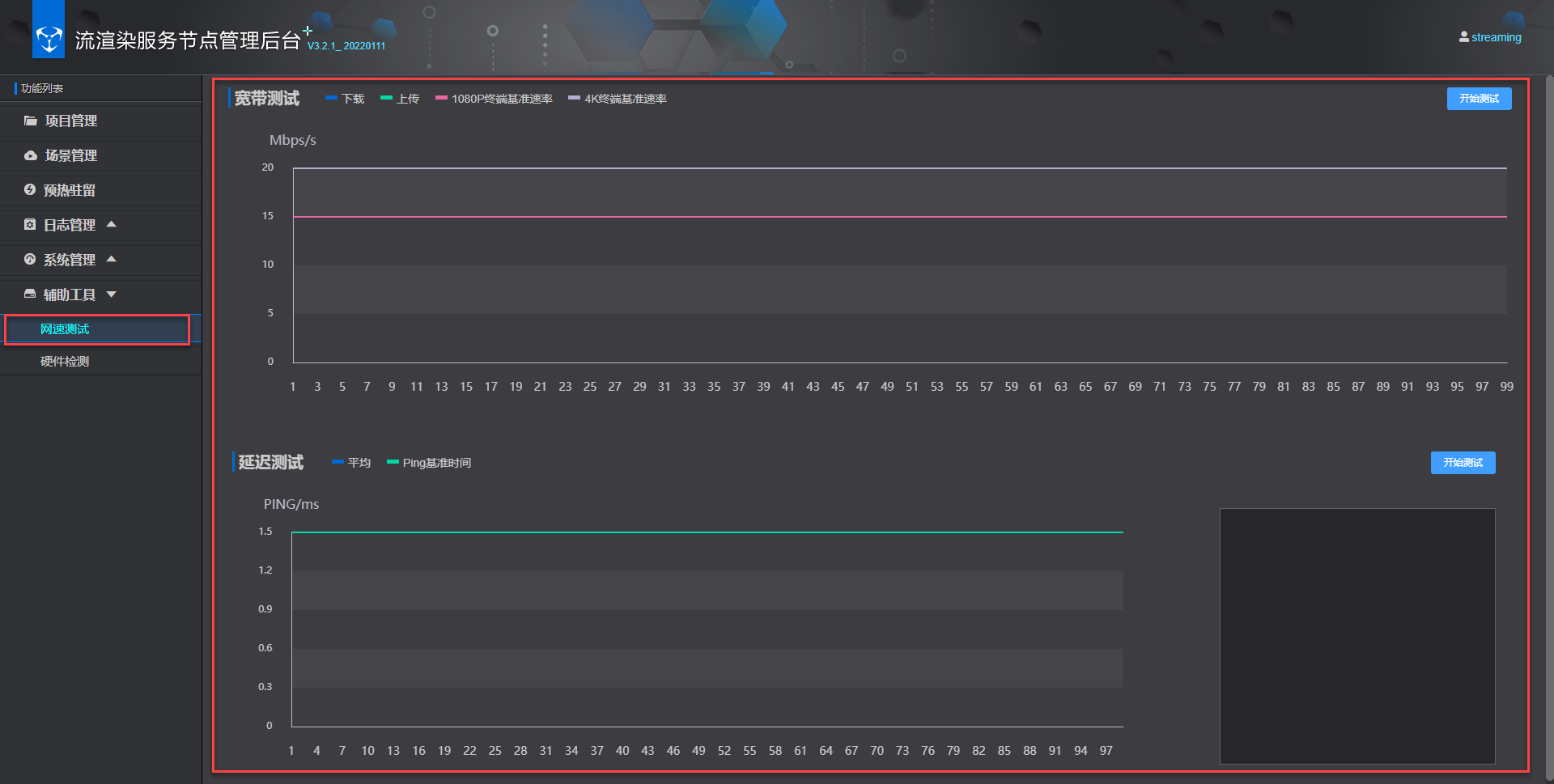 在功能模块切换区域点击展开辅助工具功能选项卡,会展开两个选项:网速测试和硬件,如下图所示: