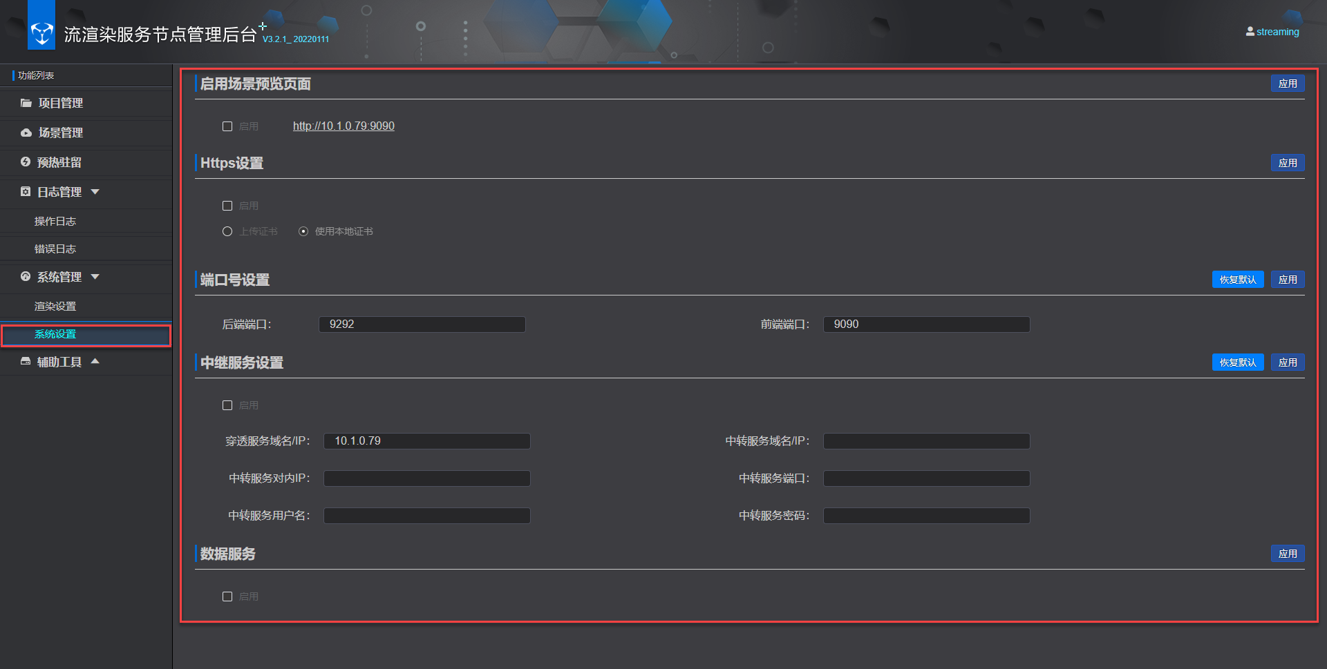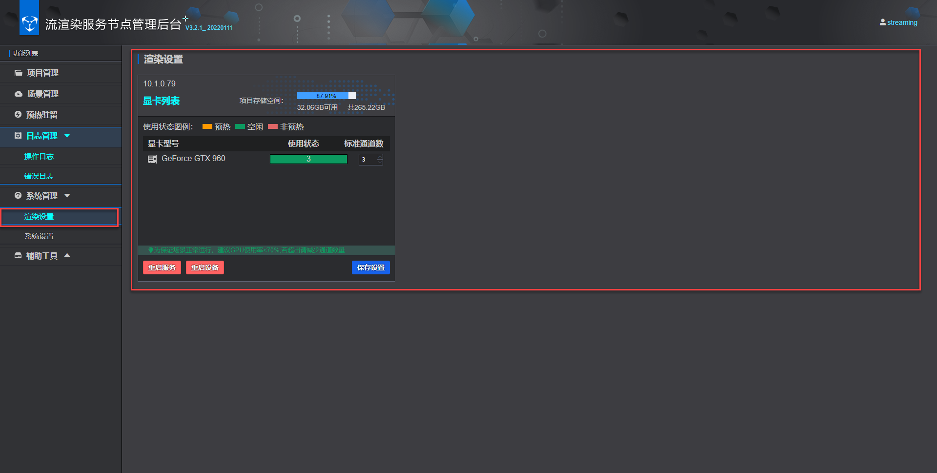 关于渲染设置的功能说明,请参考系统设置 。